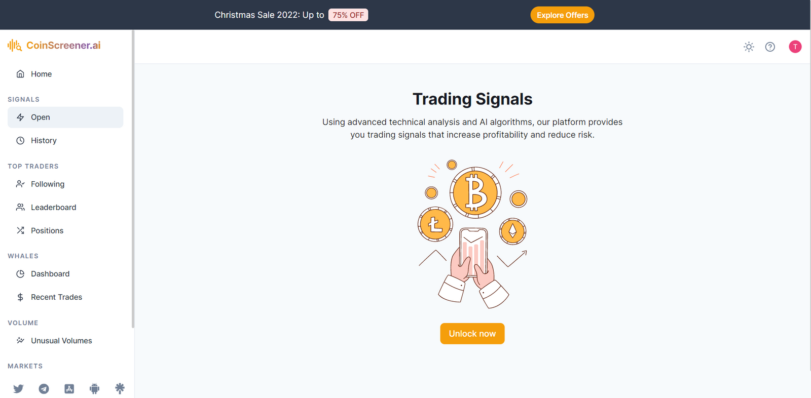 1. Get the trading signals alert on CoinScreener Platform