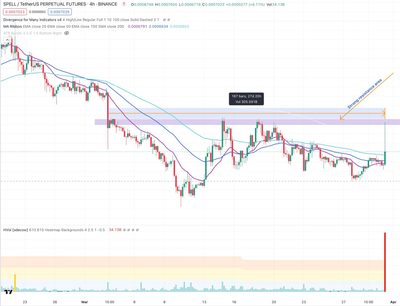 Step 1: On CoinScreener app/webapp, you will get Pump/Dump Unusual Volumes signals. Today, typical for a series of Pump Unusual Volumes 20x or more the volume of SPELL/USDT tokens, with a time frame of 5 minutes.