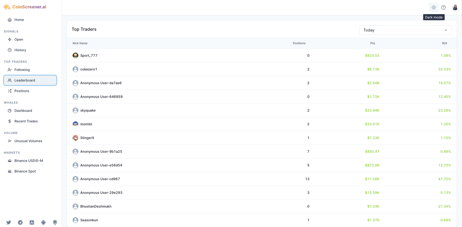 Users can screen the Top traders with the highest PnL and ROI to analyze their behavior in trading. Some Top traders also make their Twitter profiles public for users to access and learn from their trading opinions.